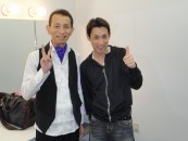 左の写真は楽屋から・・なんとこの日は衣装のワイシャツを忘れてしまい・・・同じゲストの若原りょうさんの