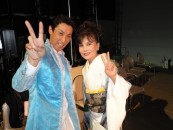 ネーム入りのシャツをお借りして着たところをパチリッ!!超ー焦りました・・・ありがとうございました「りょう」さん!!!たきのえいじ先生との弾き語りの場面です!これまた超~緊張~・・・。何と曲目は「みだれ髪」です。